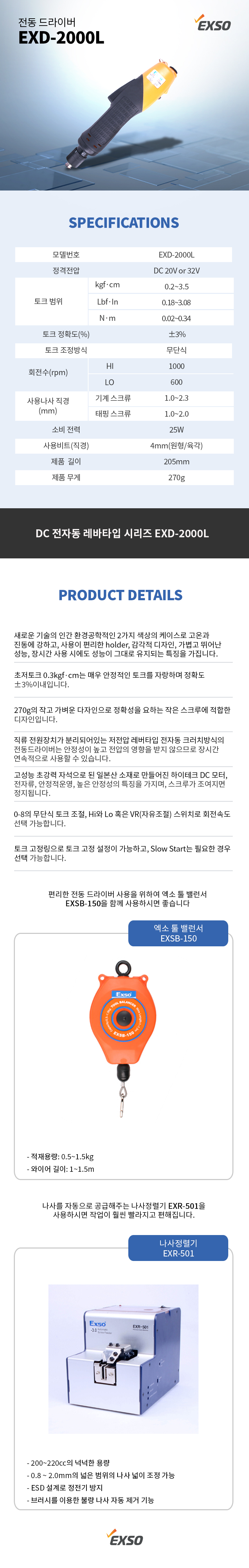 EXD-2000L > 전동 드라이버